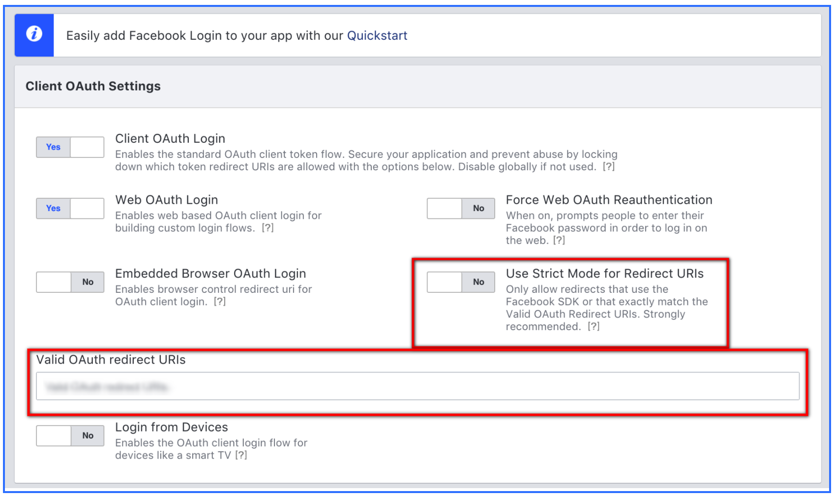 Facebook Login Settingsand enter your website domain or subdomain where you installed Socialite in theValid OAuth redirect URIsthen clickSave ChangesMake sure you have disabled the